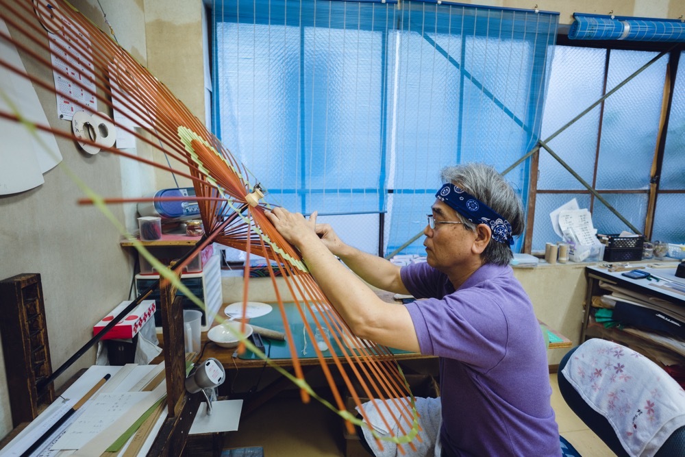 和傘はとても複雑なつくりをしているので、一般的には10数人の専門職人が工程を分業して仕上げていきます。