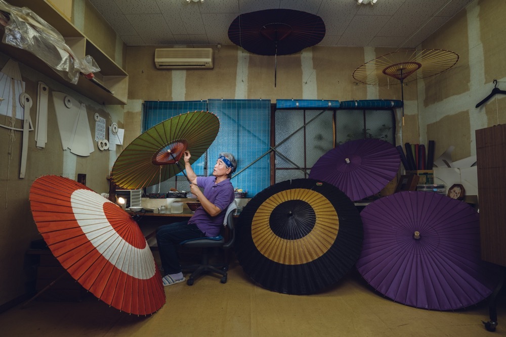 和傘ひとつひとつに魂を込め、良いものを作ろうとしている職人のかっこよさを伝えるのに、言葉は不要。アーウィンさんの写真からは職人の気質や威厳が存在感を放ちます。