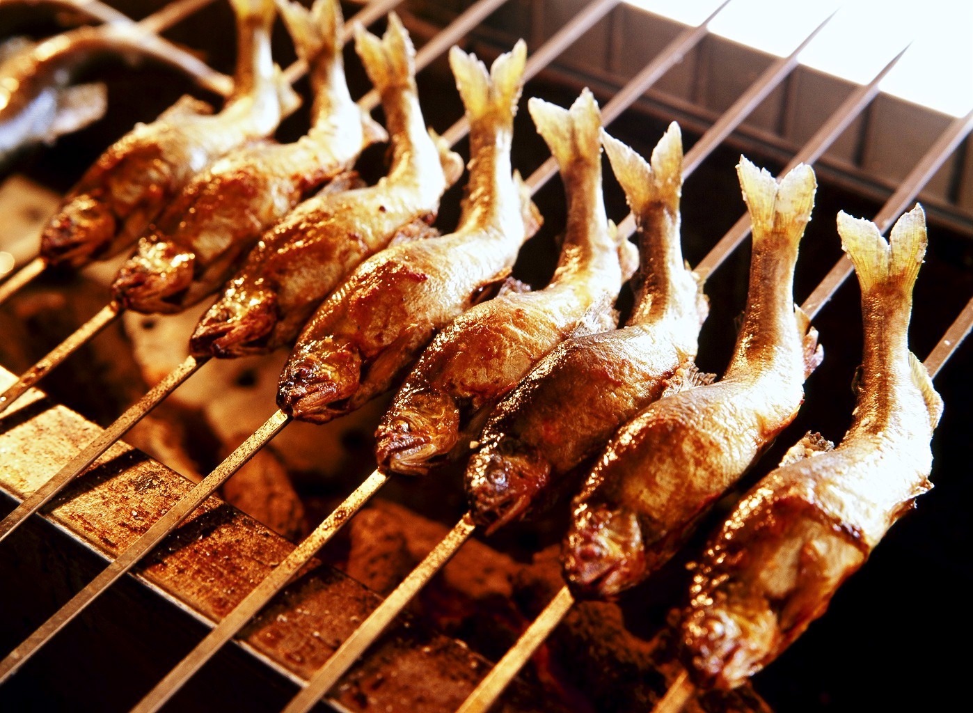(↑ 炭火で40分かけて焼きあげる絶品の鮎の塩焼き。このためだけに県外から足を運ぶ人も!)