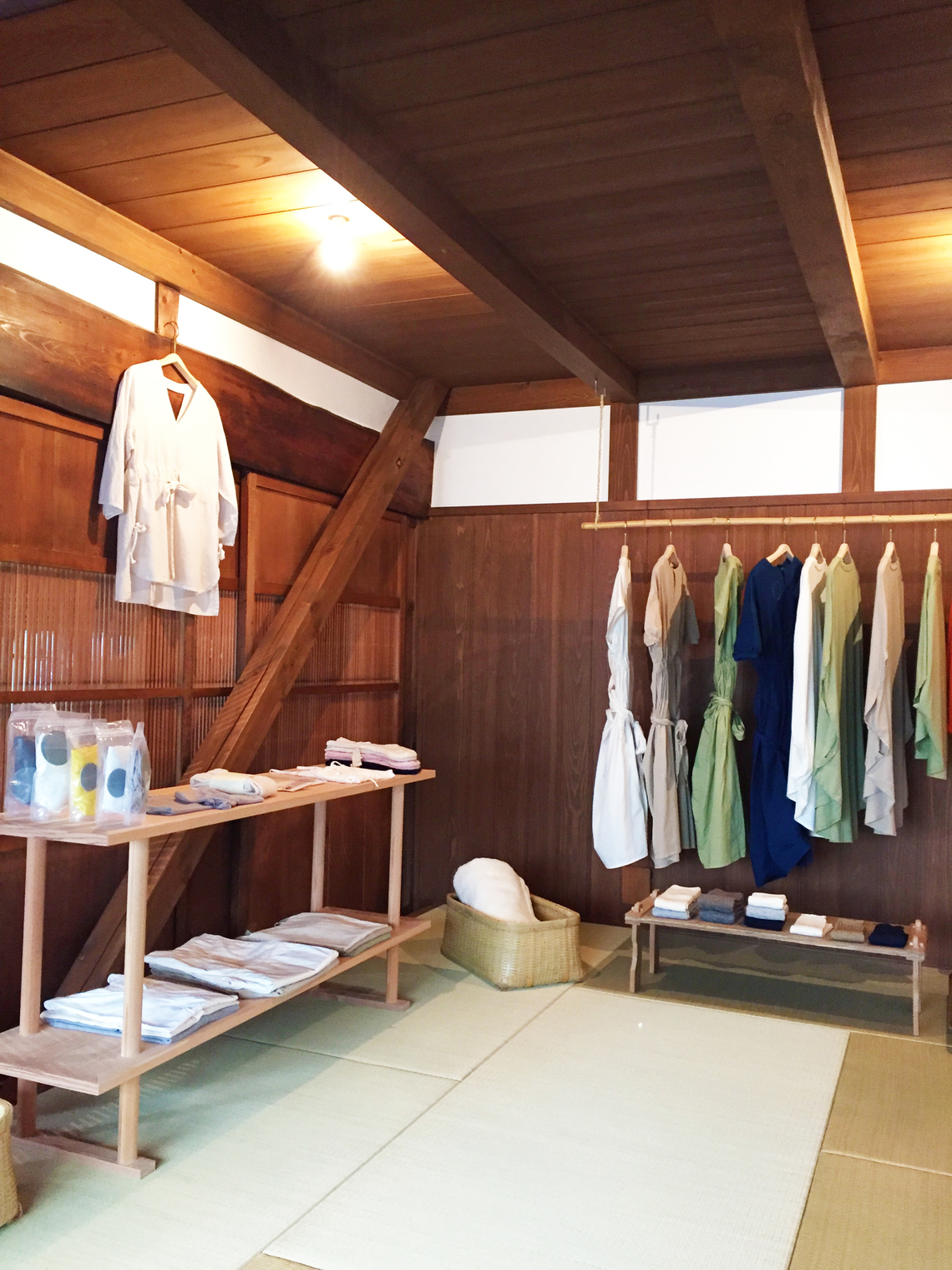 古民家を改装した懐かしい雰囲気の店内や、冷え取りグッズや素材を活かした衣服、