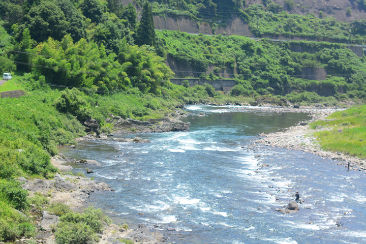 (鮎釣りをしている人も。(人がものすごく小さい!))