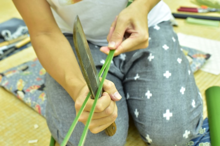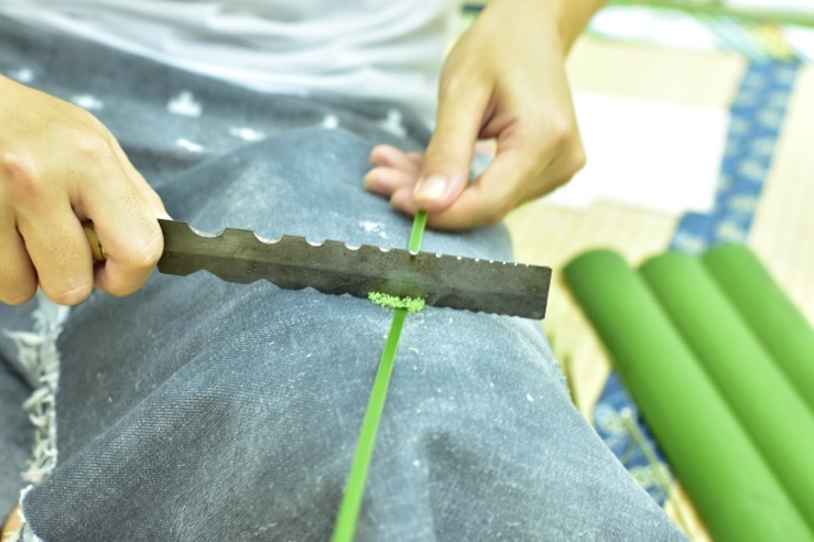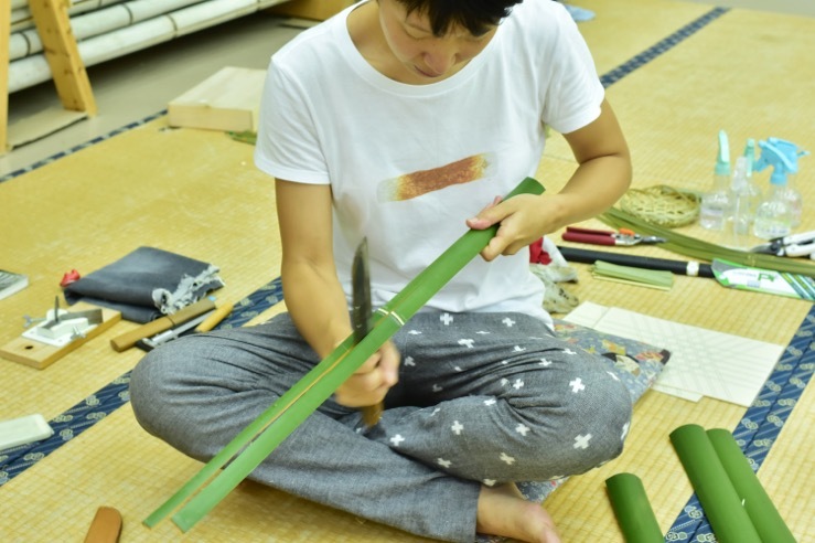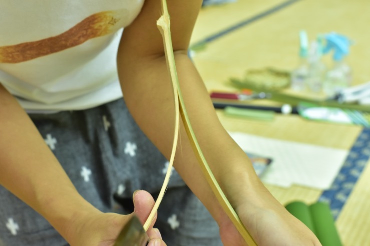 竹は繊維がまっすぐだから切りやすく、厚みを薄くする作業も一見簡単そうに見えても・・・