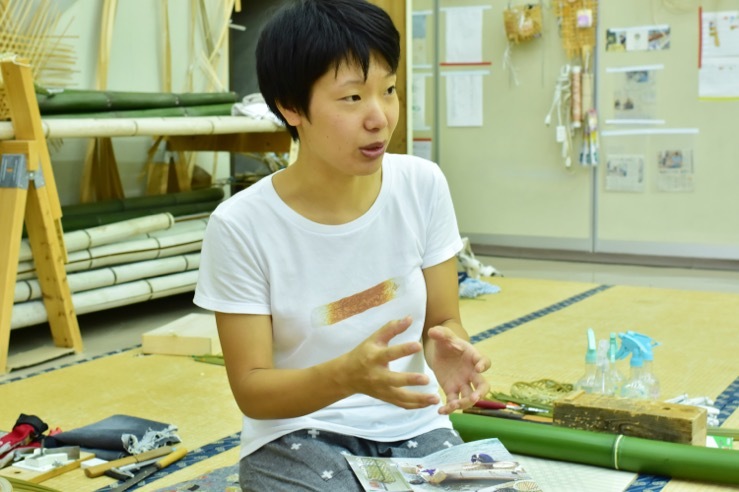「自分の手の中で、竹(植物)が、竹細工(モノ)になるのは、単純に面白いと思うので、いろんな人に体験してもらいたい」と話す安藤さん。