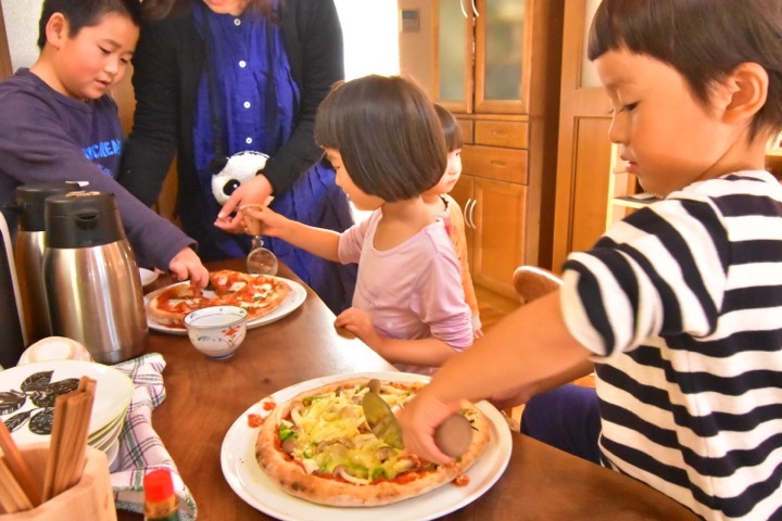 「自分でトッピングしたピザをピザ釜で焼いて食べる」!