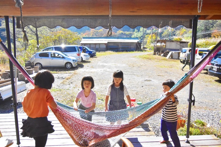 のんびりハンモックで揺られるもよし、川で泳ぐもよし、味噌づくりや酵素づくりの講座に参加するもよし。