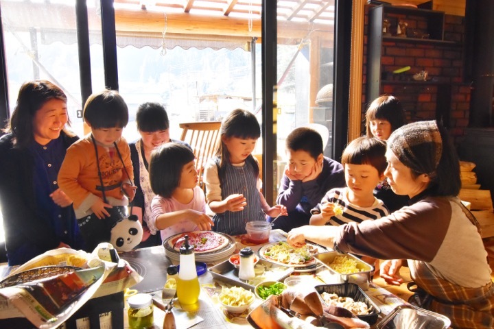 早速、ピザのトッピングに挑戦!『みどりの谷』のオーナー松原さんと。