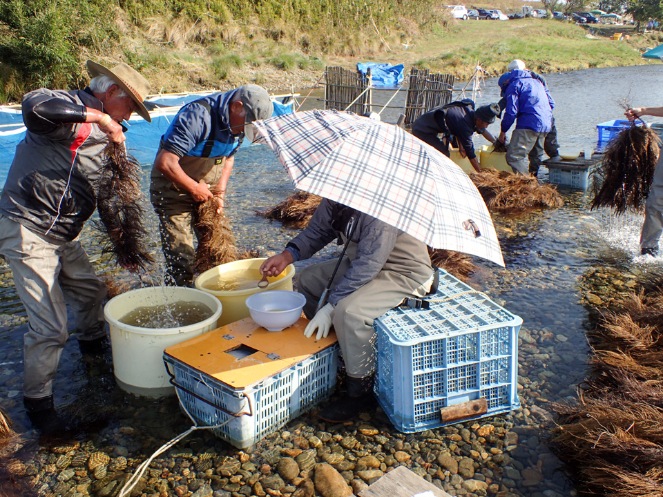 人工授精で、来年の天然遡上アユの赤ちゃんを待つ