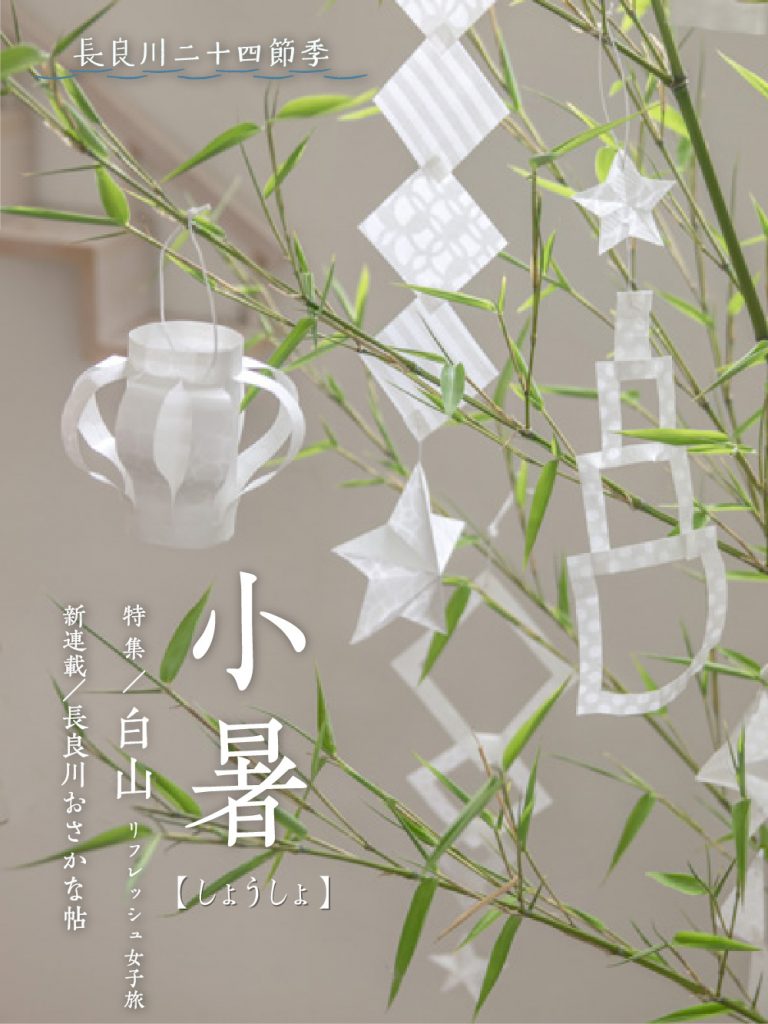 | 本日2017年7月7日(金)は暦の上では「小暑(しょうしょ)」。七夕でもありますね。 ・・・・・・・・・・・・・・・・・・・・・・・・・・・・ 「小暑」 暑中見舞いは、小暑から立秋までに出します。小暑より前は梅雨見舞い、立秋より後は暑中見舞いとなります。ただ、梅雨明けまでは暑中見舞いとして送るのは待った方がよさそうですね。 今回のテーマは「白山でリフレッシュ旅」です。 |